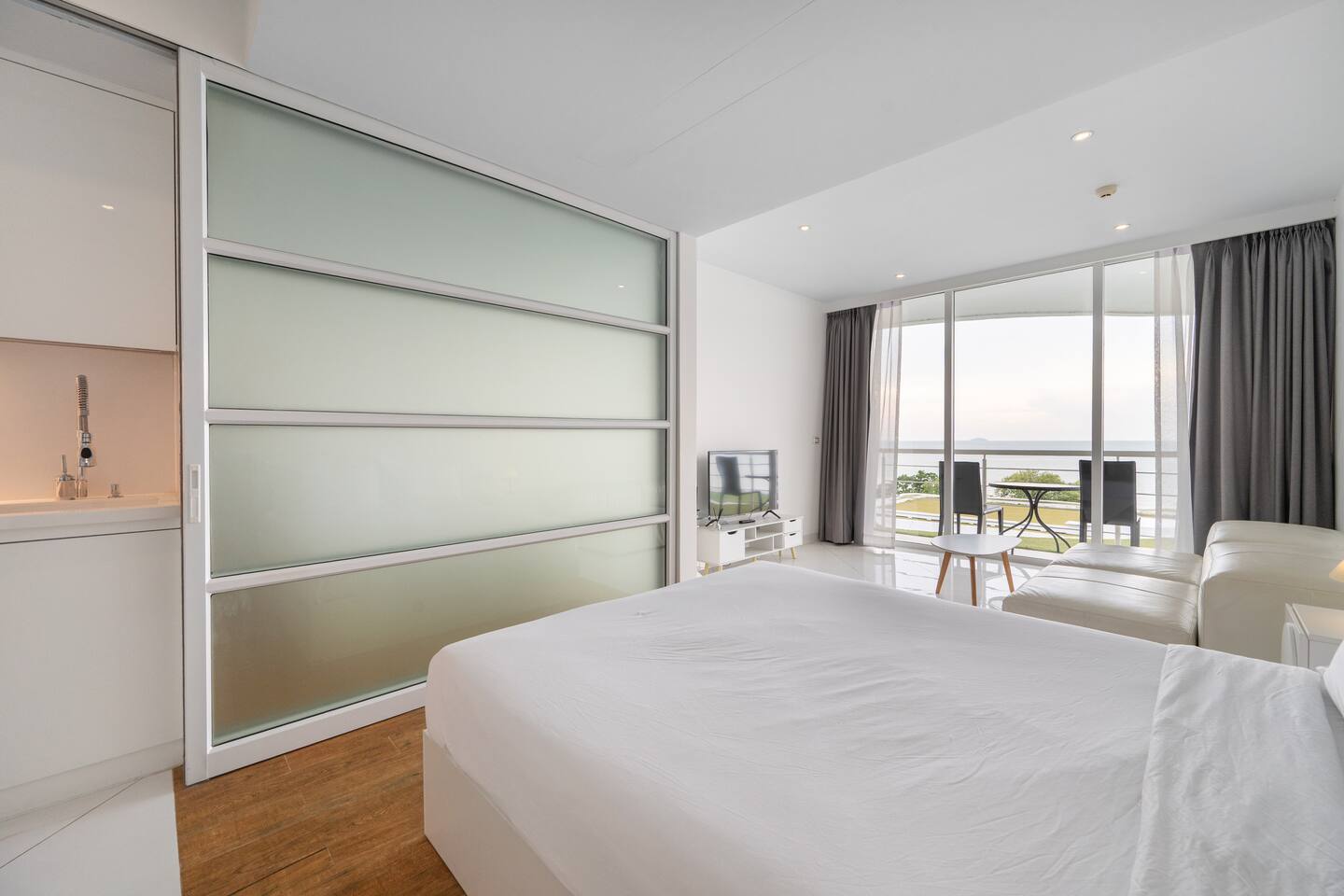 The Pure Sunset will rise your soul. A charming & calm place with gorgeous ocean view. Relaxing on the private beach or a fabulous view pool, gym, and sauna. A quiet place nearby Center of Pattaya. Sunset ocean view room, cozy sofa & bedroom, and compact kitchen with all-you-need utensils for cooking simple meals.