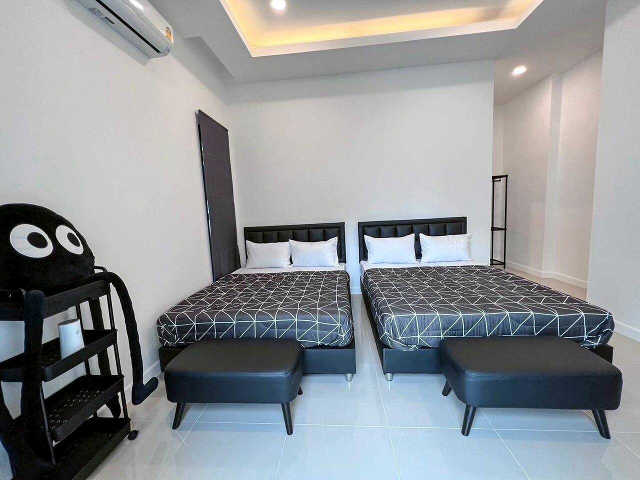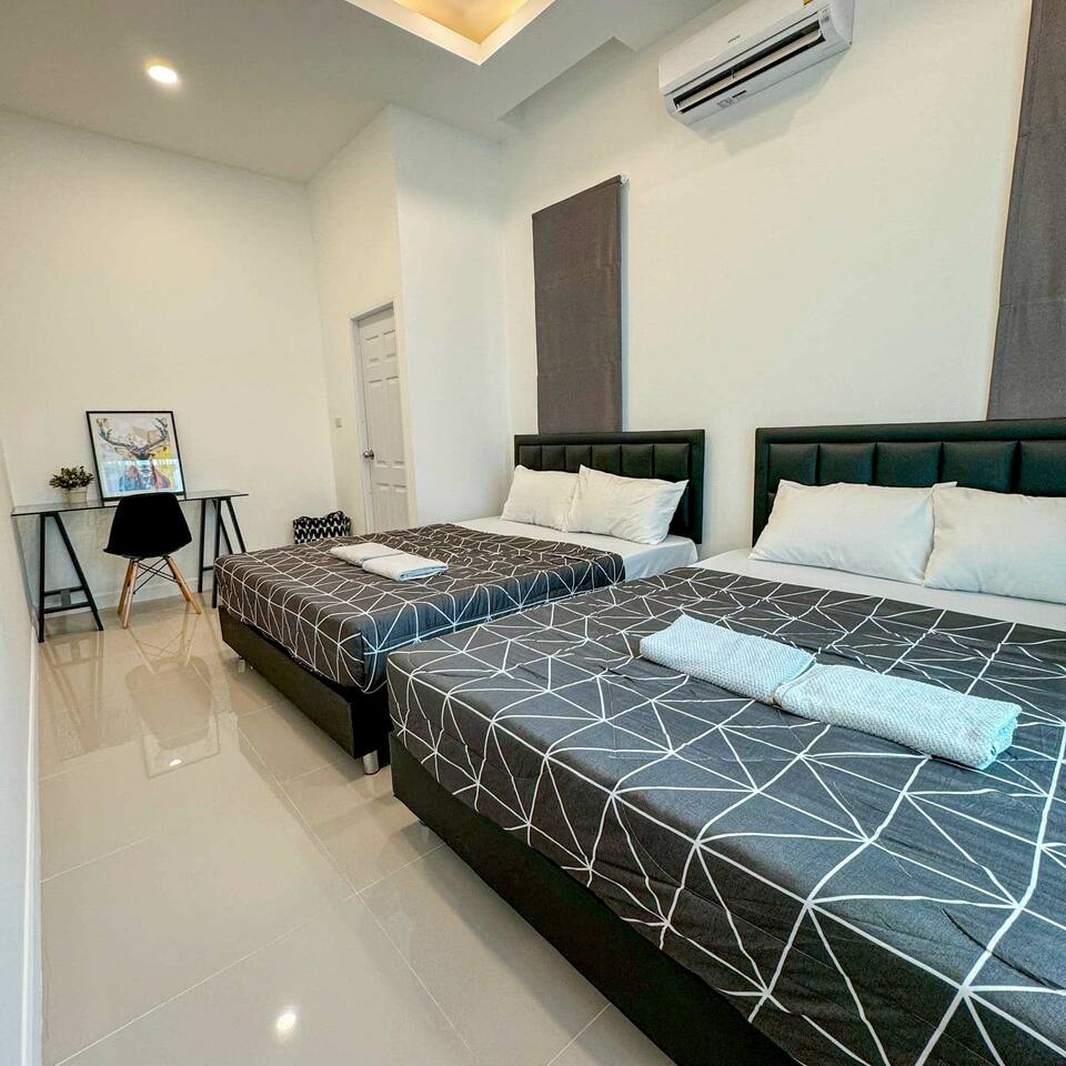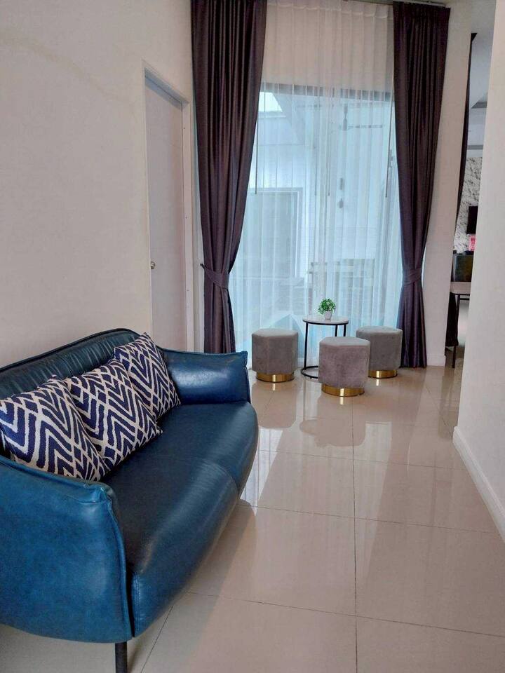 ๐โโ๏ธ Private Pool Paradise (Sleeps 12) - Cozy private pool with relaxing lighting - perfect ambiance for evening entertainment - Private saltwater pool - crystal clear and refreshing (guests love this feature!) - 100% private - party as loud as you want, no neighbors can see in - Large pool area - plenty of space for everyone to swim and play - Pool floats included - we provide fun inflatables - Ice bucket provided - keep those drinks cold poolside ๐ค Entertainment Central - Party Like Rockstars - Full karaoke system with large Samsung speaker - sing your hearts out! - Pool table indoors - for when you need a break from the sun - BBQ grill area - perfect for group cooking sessions - Large flat-screen TV with Netflix - movie nights by the pool - Powerful sound system - pool parties that rock all night long - Dedicated party zones - indoor and outdoor entertainment spaces ๐ Spacious Family Comfort (3 Bedrooms, 4 Bathrooms) - Bedroom 1: 1 Queen bed (5ft) - ensuite bathroom - Bedroom 2: 1 Queen bed (5ft) - ensuite bathroom - Bedroom 3: Bunk beds - Queen bottom (5ft), Single top (3ft) - shared bathroom access - 4 Full bathrooms total - 238 sqm of comfortable living space - No morning bathroom queues - everyone gets convenient access! - Modern, clean bathrooms with hot showers - Spacious bedrooms - comfortable for groups and families up to 12 people ๐ณ Full Kitchen & Dining Paradise - Large Thai-style kitchen - full gas stove, all cooking equipment - Complete cookware set - pots, pans, oil, basic seasonings included - All dishes and utensils - plates, bowls, chopsticks, glasses ready - Large dining area - space for the whole group to eat together - Refrigerator & microwave - store those BBQ ingredients and party snacks -Room service available - we can arrange local food delivery ๐ What Our Party Guests Say (Real Reviews) "Everything is just perfect, private, personalized, very nice billiards swimming pool karaoke barbecue everything is top notch" - Ali K. "Very spacious, has everything - karaoke, pool play, cooking, family vibes" - Narisara S. "Full function! Private pool, karaoke, pool table - highly recommend!" - Kasira K. "The location is perfect, very private but convenient" - Multiple Guests ๐ Perfect Na Jomtien Location (Huai Yai) Address: 89/23 Moo 7, Soi Wat Yan Sangkhawararam, Huai Yai, Bang Lamung, Chonburi - 3km to Ban Amphoe Beach - beautiful local beach experience - 3km to Cartoon Network Water Park - kids will love this! - 3.5km to Nong Nooch Garden - world-famous botanical gardens - 4km to Wat Yansangwararam - peaceful temple visits (same street!) - 14km to Jomtien Beach - main tourist beach area Walking distance to 7-Eleven - snacks and necessities covered - Fresh market nearby - grab ingredients for your BBQ feast - Easy parking - 2 cars inside compound, 5 cars outside available ๐ก Honest Notes for Smart Party Planning - No electricity surcharges - AC and amenities included in rate - Pet-friendly - dogs under 5kg welcome (free of charge) - Pool float replacement - fee applies if damaged beyond repair - Water pressure - sometimes lighter in peak hours (we're always improving) - Pool maintenance - saltwater system kept crystal clear daily - Maximum 12 guests - perfect group size for optimal comfort ๐ฏ House Rules for Everyone's Fun - Check-in: 2:00 PM | Check-out: 11:00 AM - 30-minute advance notice required for arrival coordination - No smoking indoors - outdoor areas are fine - Quiet hours after 10:00 PM - respect for neighbors appreciated - Equipment care appreciated - help us maintain everything for future guests - Emergency contact: 24/7 assistance available