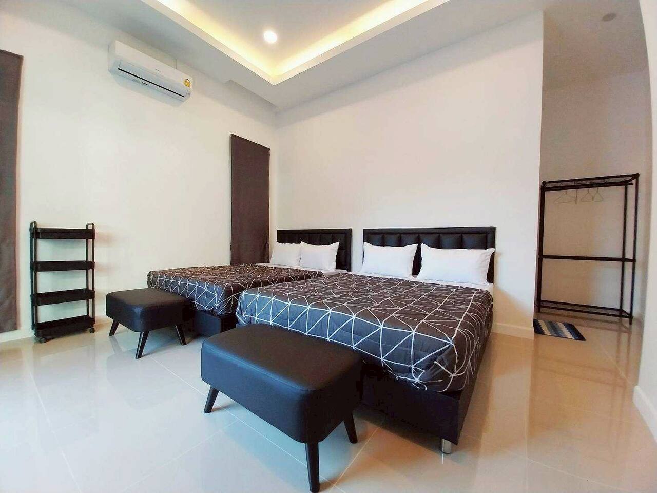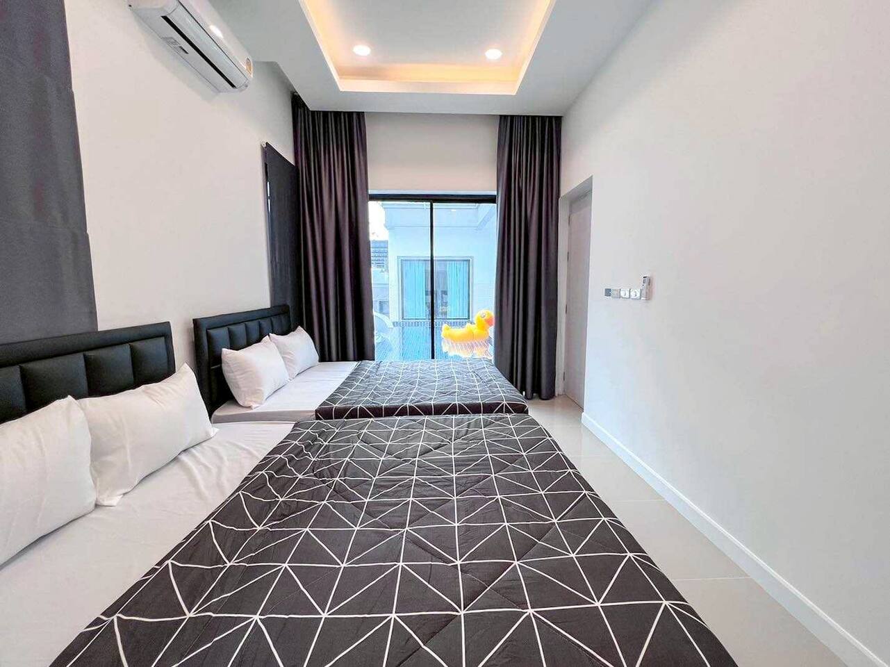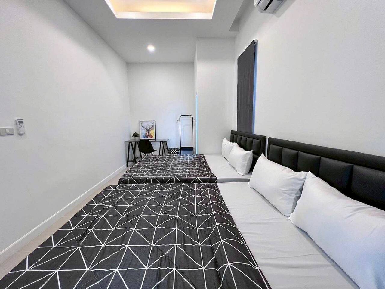 ๐โโ๏ธ Private Pool Paradise (Sleeps 12) - Cozy private pool with relaxing lighting - perfect ambiance for evening entertainment - Private saltwater pool - crystal clear and refreshing (guests love this feature!) - 100% private - party as loud as you want, no neighbors can see in - Large pool area - plenty of space for everyone to swim and play - Pool floats included - we provide fun inflatables - Ice bucket provided - keep those drinks cold poolside ๐ค Entertainment Central - Party Like Rockstars - Full karaoke system with large Samsung speaker - sing your hearts out! - Pool table indoors - for when you need a break from the sun - BBQ grill area - perfect for group cooking sessions - Large flat-screen TV with Netflix - movie nights by the pool - Powerful sound system - pool parties that rock all night long - Dedicated party zones - indoor and outdoor entertainment spaces ๐ Spacious Family Comfort (3 Bedrooms, 4 Bathrooms) - Bedroom 1: 1 Queen bed (5ft) - ensuite bathroom - Bedroom 2: 1 Queen bed (5ft) - ensuite bathroom - Bedroom 3: Bunk beds - Queen bottom (5ft), Single top (3ft) - shared bathroom access - 4 Full bathrooms total - 238 sqm of comfortable living space - No morning bathroom queues - everyone gets convenient access! - Modern, clean bathrooms with hot showers - Spacious bedrooms - comfortable for groups and families up to 12 people ๐ณ Full Kitchen & Dining Paradise - Large Thai-style kitchen - full gas stove, all cooking equipment - Complete cookware set - pots, pans, oil, basic seasonings included - All dishes and utensils - plates, bowls, chopsticks, glasses ready - Large dining area - space for the whole group to eat together - Refrigerator & microwave - store those BBQ ingredients and party snacks -Room service available - we can arrange local food delivery ๐ What Our Party Guests Say (Real Reviews) "Everything is just perfect, private, personalized, very nice billiards swimming pool karaoke barbecue everything is top notch" - Ali K. "Very spacious, has everything - karaoke, pool play, cooking, family vibes" - Narisara S. "Full function! Private pool, karaoke, pool table - highly recommend!" - Kasira K. "The location is perfect, very private but convenient" - Multiple Guests ๐ Perfect Na Jomtien Location (Huai Yai) Address: 89/23 Moo 7, Soi Wat Yan Sangkhawararam, Huai Yai, Bang Lamung, Chonburi - 3km to Ban Amphoe Beach - beautiful local beach experience - 3km to Cartoon Network Water Park - kids will love this! - 3.5km to Nong Nooch Garden - world-famous botanical gardens - 4km to Wat Yansangwararam - peaceful temple visits (same street!) - 14km to Jomtien Beach - main tourist beach area Walking distance to 7-Eleven - snacks and necessities covered - Fresh market nearby - grab ingredients for your BBQ feast - Easy parking - 2 cars inside compound, 5 cars outside available ๐ก Honest Notes for Smart Party Planning - No electricity surcharges - AC and amenities included in rate - Pet-friendly - dogs under 5kg welcome (free of charge) - Pool float replacement - fee applies if damaged beyond repair - Water pressure - sometimes lighter in peak hours (we're always improving) - Pool maintenance - saltwater system kept crystal clear daily - Maximum 12 guests - perfect group size for optimal comfort ๐ฏ House Rules for Everyone's Fun - Check-in: 2:00 PM | Check-out: 11:00 AM - 30-minute advance notice required for arrival coordination - No smoking indoors - outdoor areas are fine - Quiet hours after 10:00 PM - respect for neighbors appreciated - Equipment care appreciated - help us maintain everything for future guests - Emergency contact: 24/7 assistance available