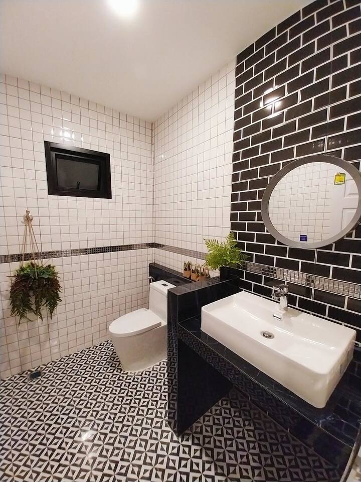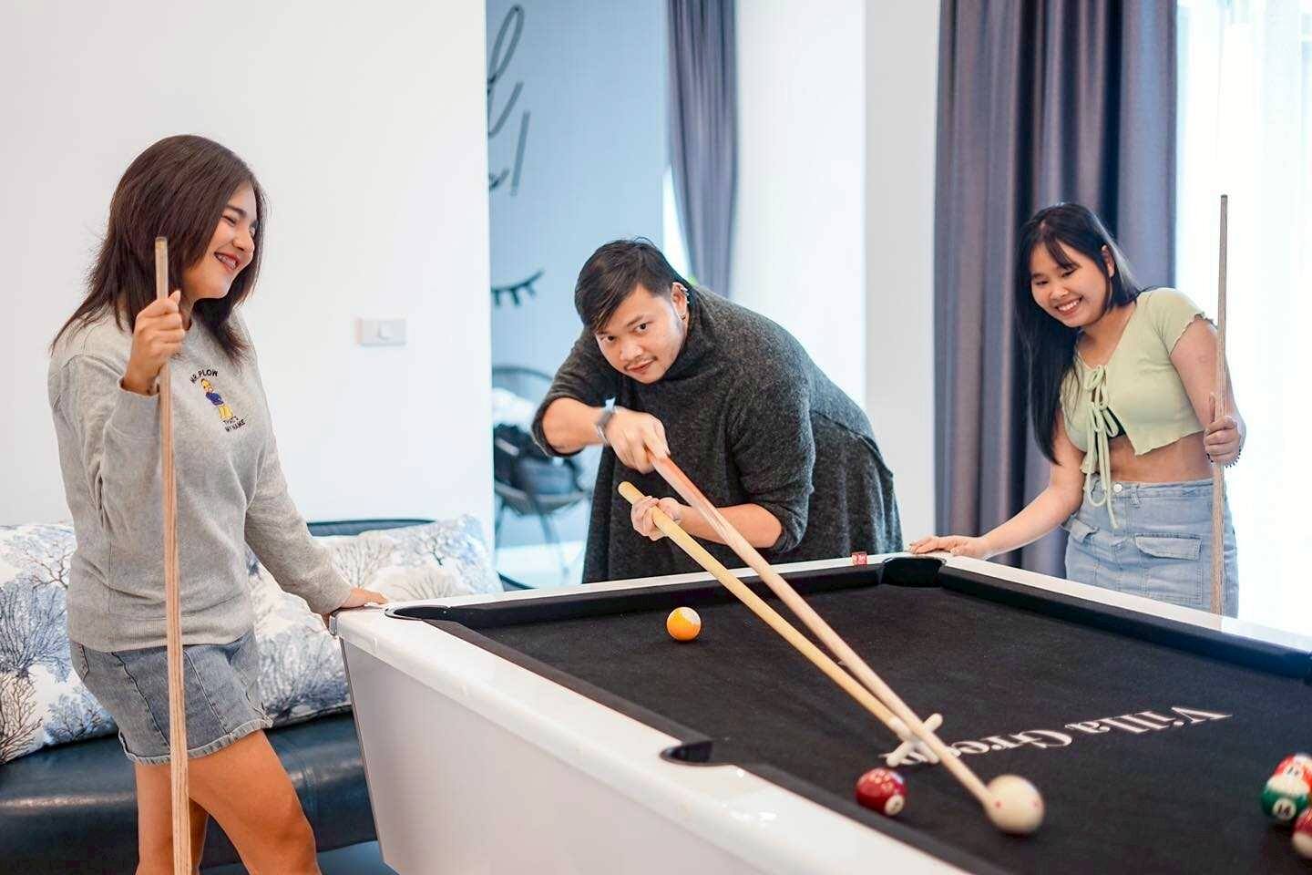 Guest Access ๐ก Your Complete Private Entertainment Complex ๐ก Entire Villa Exclusively Yours All 3 floors with complete privacy during your stay 4 bedrooms + 4 bathrooms (ensuite in main bedrooms) Massive common areas perfect for group gatherings and party planning Private pool area with cozy relaxing lighting - perfect for evening entertainment! Outdoor BBQ zone with seating area for sunset grilling sessions ๐ฎ Entertainment Paradise Ready to Rock Full karaoke setup with large Samsung speakers - sing all night! Professional pool table - tournament time with your group Netflix-ready big screen TV - perfect for group movie marathons High-speed WiFi throughout - stay connected and share those pool videos Multiple charging stations - keep everyone's devices powered for the party ๐ Complete BBQ & Kitchen Setup Outdoor gas BBQ grill - perfect for group cooking sessions Large Thai kitchen with full gas stove and all equipment Complete cookware & dishes - everything needed for group meals Ice bucket included - keep drinks cold during pool parties Refrigerator space - store all your party supplies and leftovers ๐โโ๏ธ Pool & Recreation Heaven (for 12 guests) Private saltwater pool with cozy relaxing lighting (guest favorite!) Pool floats provided - we supply fun inflatables for everyone Poolside seating areas - relax and enjoy the peaceful ambiance 100% private compound - party without worrying about neighbors Multiple outdoor zones - sun bathing, shade areas, BBQ spots ๐ก๏ธ Safety & Convenience Self check-in system - perfect for groups arriving at different times 24/7 emergency contact - Villa Green management always available Secure parking area - space for multiple vehicles First aid kit provided - safety first for active pool fun Complete towel sets - pool towels and bathroom towels included โ Home Comforts Ready for Groups Coffee maker & kettle - morning fuel for the whole crew Washing machine - essential for extended stays and pool clothes Iron & drying areas - keep everyone looking good Air conditioning in all bedrooms - Bangkok heat conquered Workspace desk - for digital nomads who need to check in with work