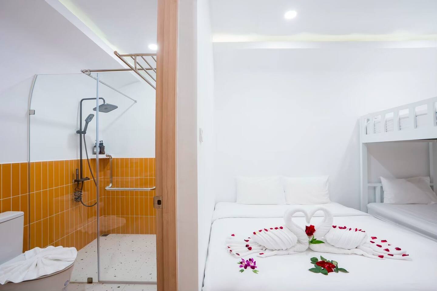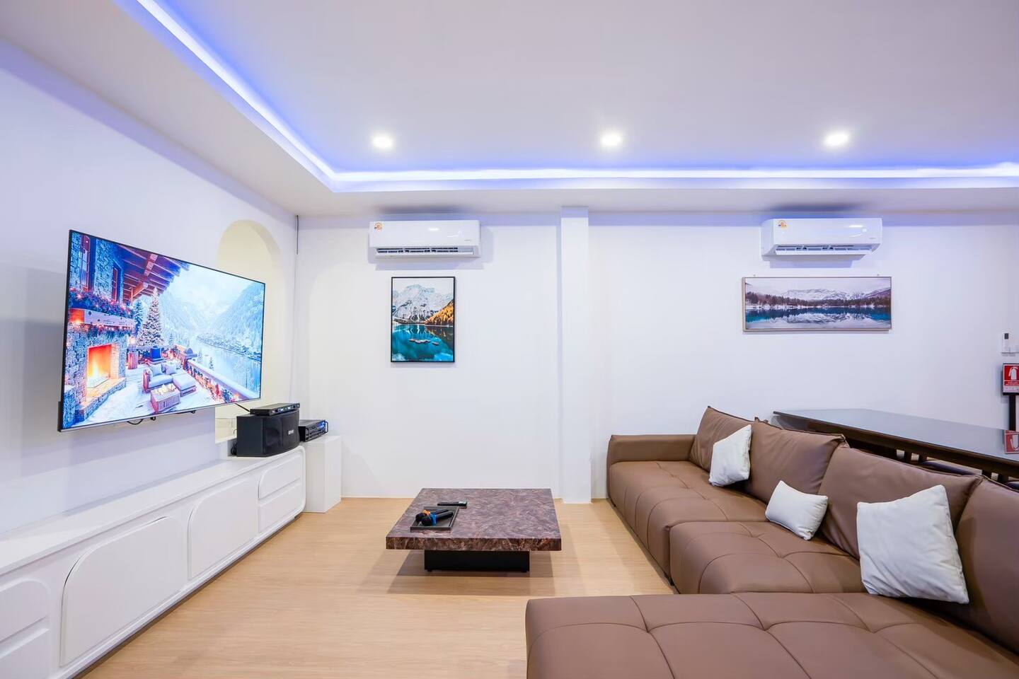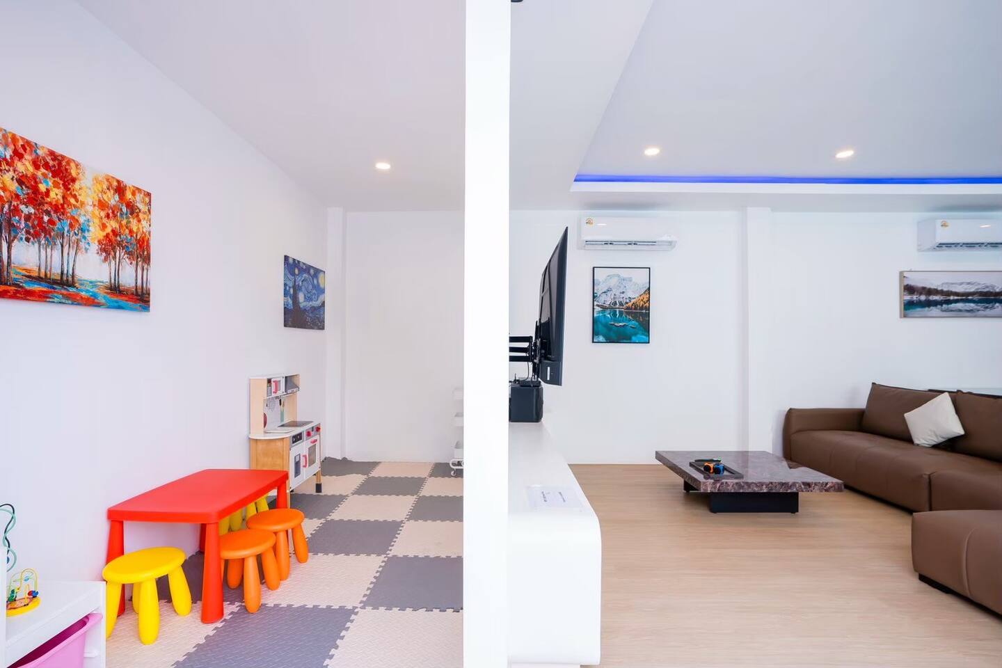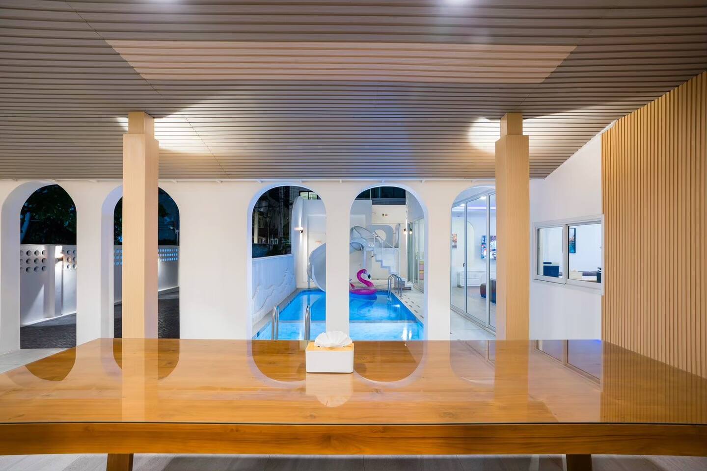 💦 Private Pool + Kids Pool Relax in your private chlorine pool (3.5 × 5 m) or let the little ones splash safely in the kids pool (3.5 × 2 m). Total pool size 3.5 × 7 m — ideal for group fun. 🎉 Entertainment for Everyone Your stay comes with: Karaoke with YouTube connection Colorful disco lighting Pool table Fun inflatable floats Slide BBQ grill for outdoor cooking Perfect for celebrations, gatherings, or a relaxing weekend away. 🐾 Pet‑Friendly We welcome small and medium pets (with a small fee). Just let us know what furry friend you’re bringing. 🛏️ Comfortable Bedrooms All 4 bedrooms come with private bathrooms. Bed setup includes king beds, queen beds, and bunk beds — great for large groups and families. 🍳 Fully Equipped Kitchen Cook with ease using: Electric stove Microwave Hot water kettle Full kitchenware BBQ grill (Just bring your own hotpot/shabu equipment.) 🚗 Convenient Parking Parking for 4 cars inside and 2 cars outside. Note: Buses cannot enter. 🧼Daily Cleaning for 2+ Nights For longer stays, housekeeping provides: Fresh linens & towels Trash removal Tissue restocks Bathroom cleaning