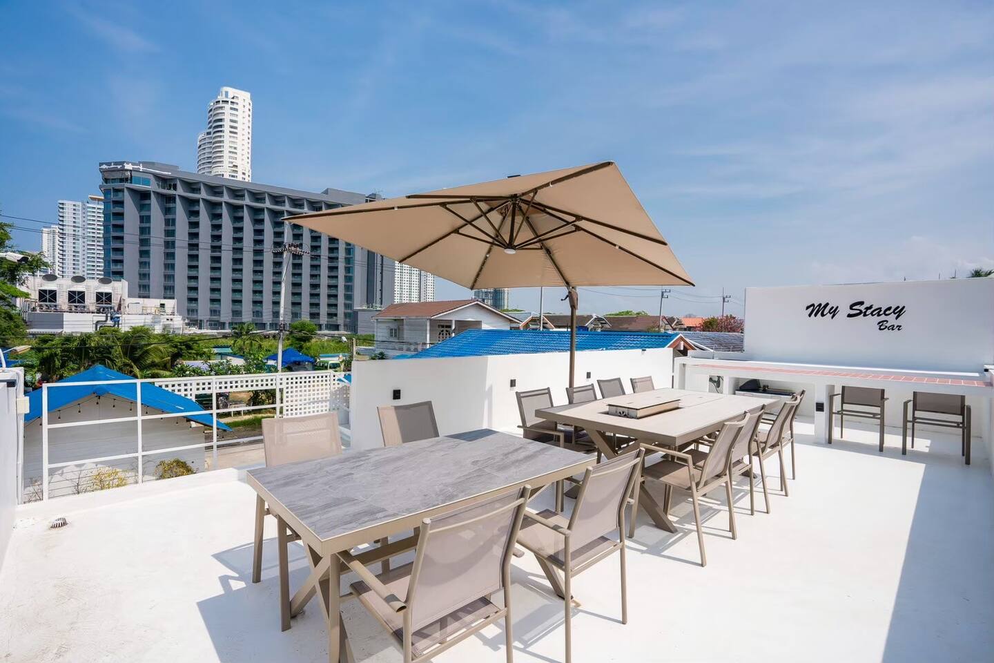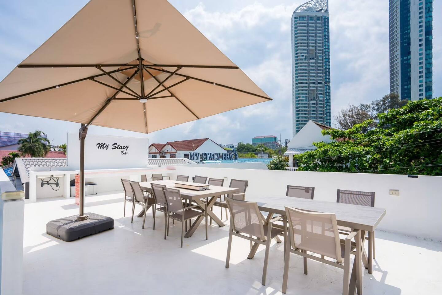 Welcome to Stacy Pool Villa, a spacious 4‑bedroom, 5‑bathroom private retreat just 50 meters from Jomtien Beach. Designed for families and groups, this single‑story villa combines comfort, fun, and convenience — all in one perfect location.
