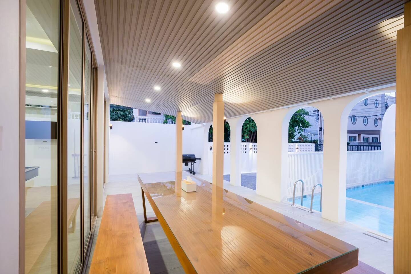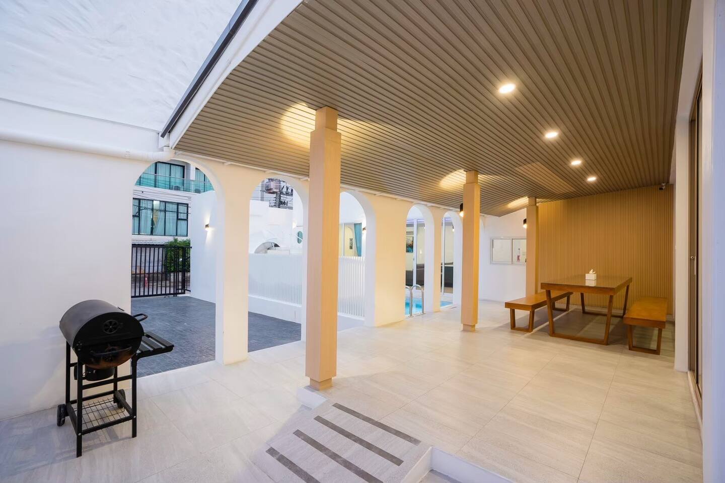 👥 Extra Guests: 500 THB per person per night. Maximum 20 additional guests allowed. 💰 Security Deposit: 5,000 THB, refunded on check‑out day if no damage is found inside the property. 🐶🐱 Pets: Small and medium‑sized dogs and cats allowed at 500 THB per pet per night. Large pets are not accepted. 🔊 Noise Policy Guests may use loud noise outdoors until 10:00 PM. After that, please continue activities and music indoors only. Late check-out is available at 2,000 THB per hour (subject to availability depending on whether there is a subsequent booking). 🐾 Pet Policy Guests must take full responsibility for their pets’ bedding and cleanliness. Please ensure there is no shedding, urine odor, or bite marks on items such as curtains, sofas, beds, and mattresses. Pets are strictly prohibited from entering the swimming pool. Bringing a cage or pet bed is highly recommended. Pets must remain under the owner’s supervision at all times. Any damage or issues caused by pets that affect the property will be the guest’s responsibility.