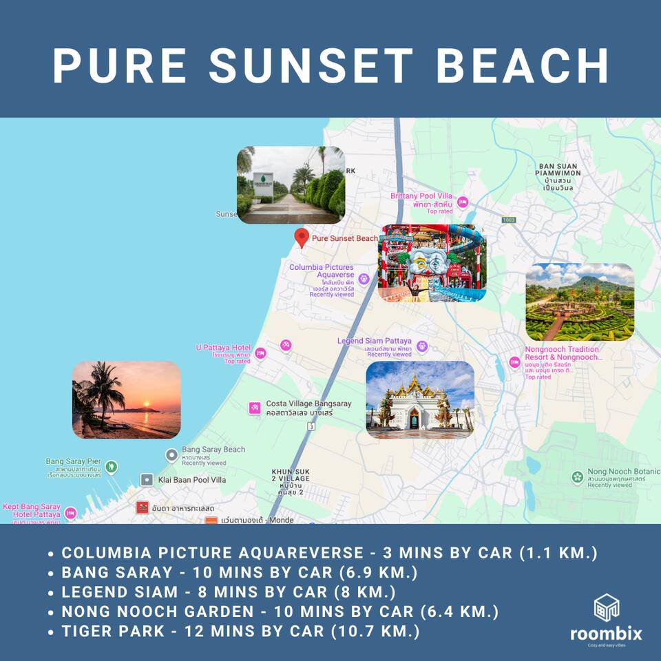 The Pure Sunset will rise your soul. A charming & calm place with gorgeous ocean view. Relaxing on the private beach or a fabulous view pool, gym, and sauna. A quiet place nearby Center of Pattaya. Sunset ocean view room, cozy sofa & bedroom, and compact kitchen with all-you-need utensils for cooking simple meals.