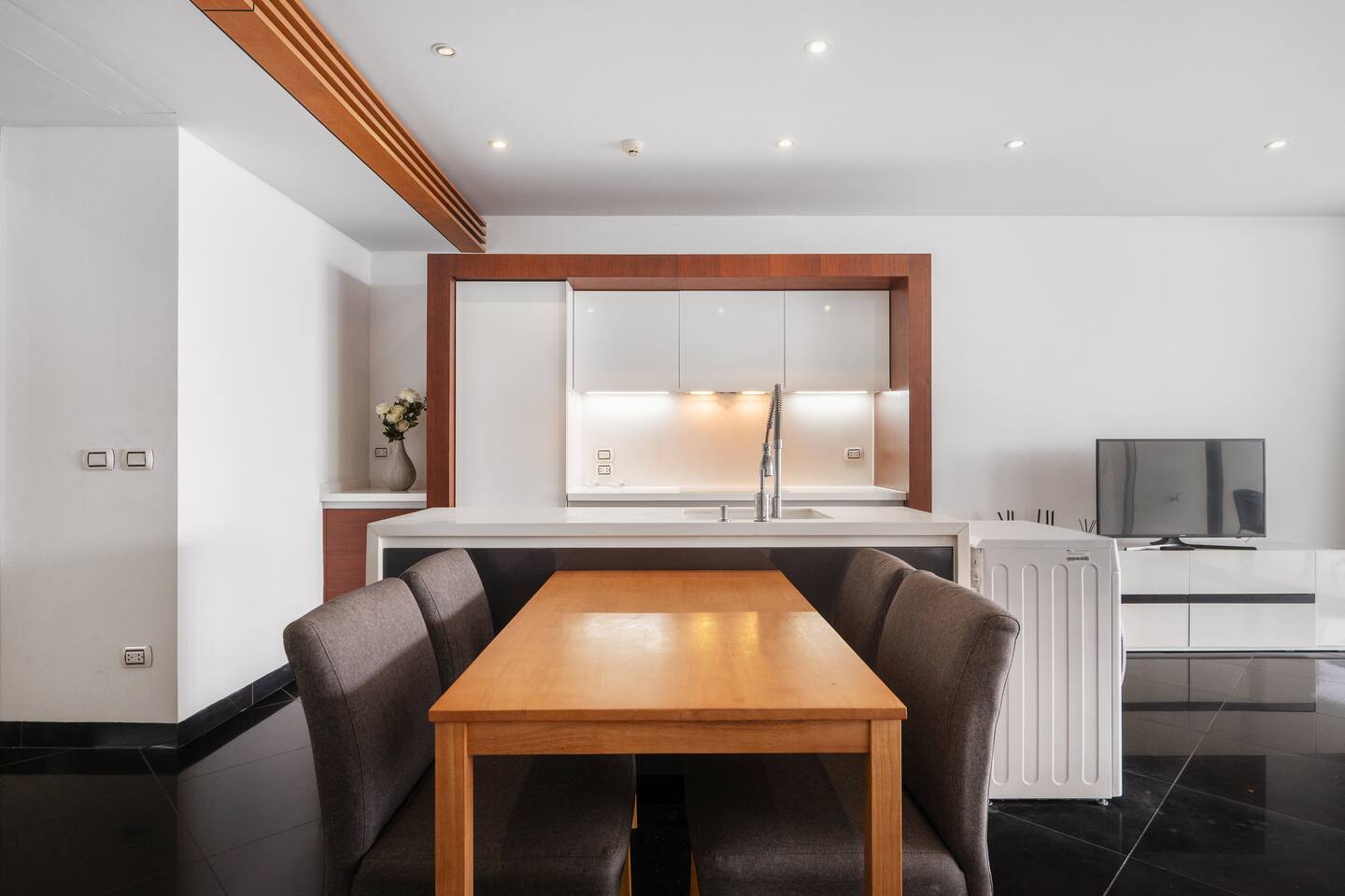 The rooms include of... - One Studio room which contains kitchen, dining table for 2, 1 cozy sofa, and 1 queen bed - Another one cozy bedroom - 2 Full Bathroom - Living room, including another kitchen and dining area for 4 - Private Balcony
