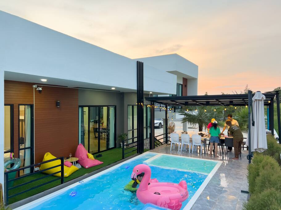 🚭 No Smoking Indoors • 2,000 THB cleaning fee applies if violated 👥 Guest Policy • Maximum occupancy: 12 guests 🍽 Kitchen Use • Please wash all dishes and kitchenware after use • A 500 THB cleaning fee will apply if dishes are left unwashed ⏰ Check-in / Check-out • Check-in: After 3:00 PM • Check-out: Before 11:00 AM ✅ General Rules • No illegal activities • Please keep the villa clean • Report any damages or issues immediately • Use all appliances and facilities responsibly