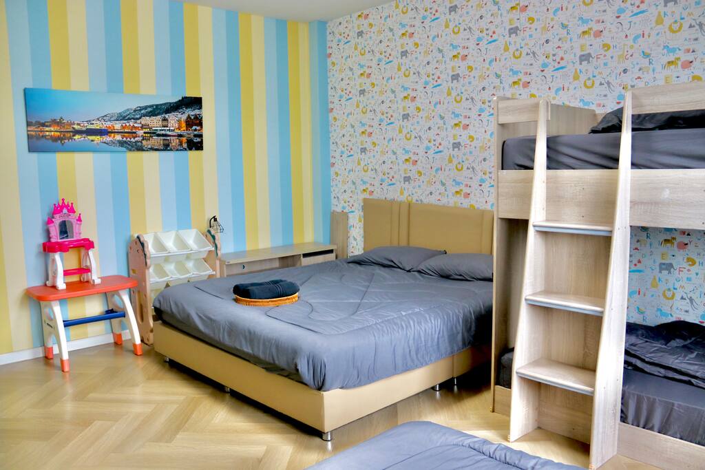 The Space: Escape to this spacious villa designed to accommodate up to 12 guests comfortably across 10 beds. The open-concept living area flows seamlessly onto the outdoor terrace, where you can enjoy your morning coffee while watching the sunrise over the shimmering lake. The private pool is the centerpiece of the outdoor space—perfect for cooling off in Bangkok's tropical climate or hosting memorable gatherings with family and friends. Bedrooms: Four generously-sized bedrooms provide comfortable sleeping arrangements for groups, families, or friends traveling together. Each room is thoughtfully appointed to ensure restful nights after your Bangkok adventures. Kitchen & Dining: The fully-equipped kitchen allows you to prepare meals at your leisure, whether you're cooking up local ingredients from nearby markets or simply brewing your morning coffee. Enjoy meals together in the dining area or al fresco by the pool.