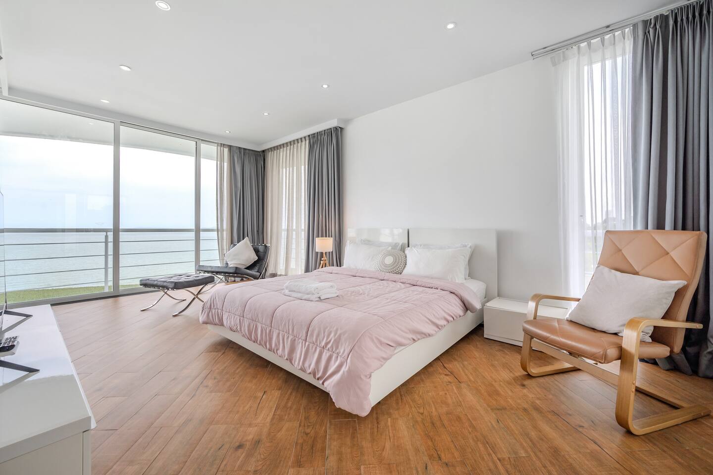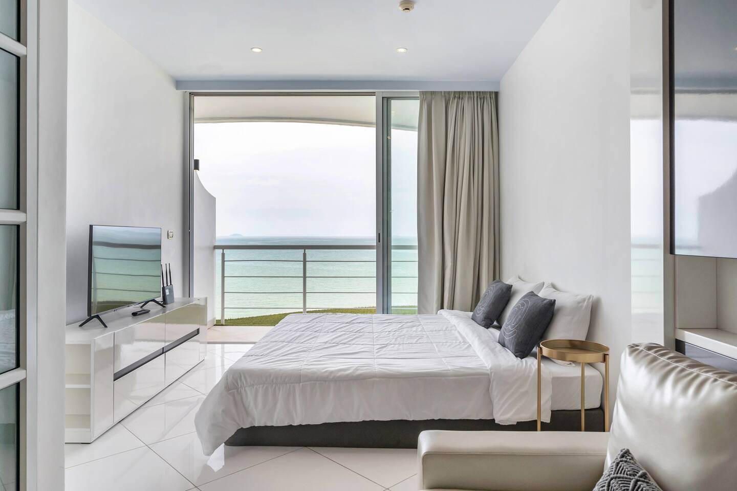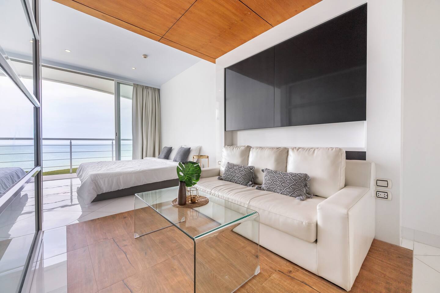 The Pure Sunset will rise your soul. A charming & calm place with gorgeous ocean view. Relaxing on the private beach or a fabulous view pool, gym, and sauna. A quiet place nearby Center of Pattaya. Sunset ocean view room, cozy sofa & bedroom, and compact kitchen with all-you-need utensils for cooking simple meals.