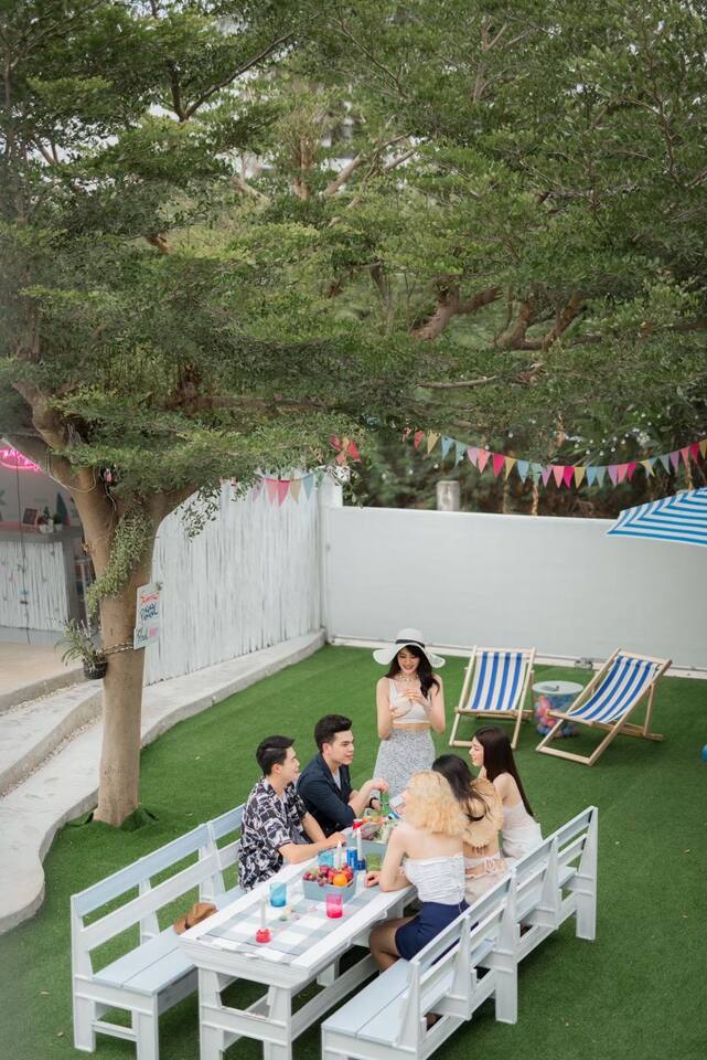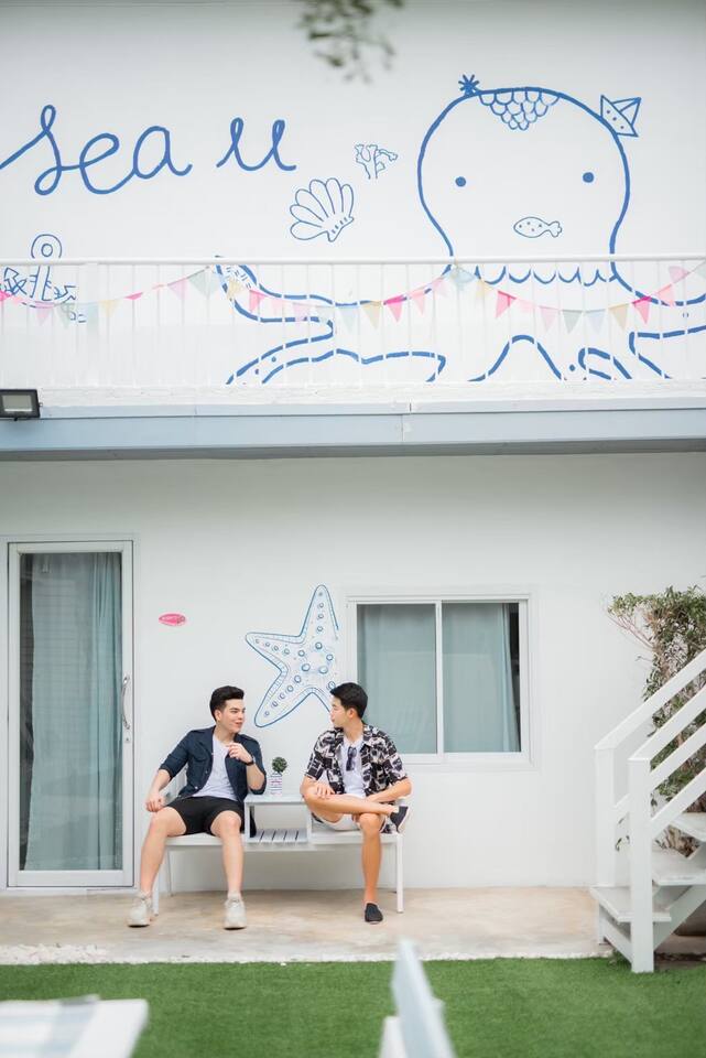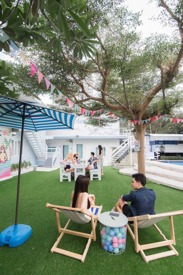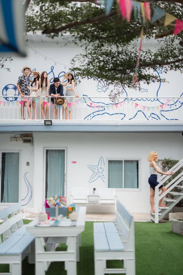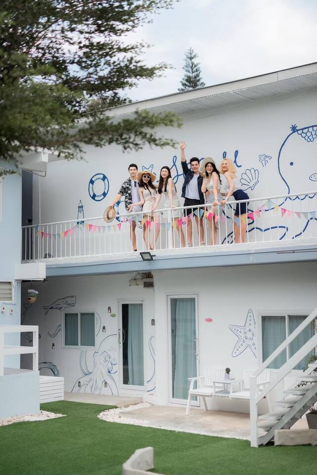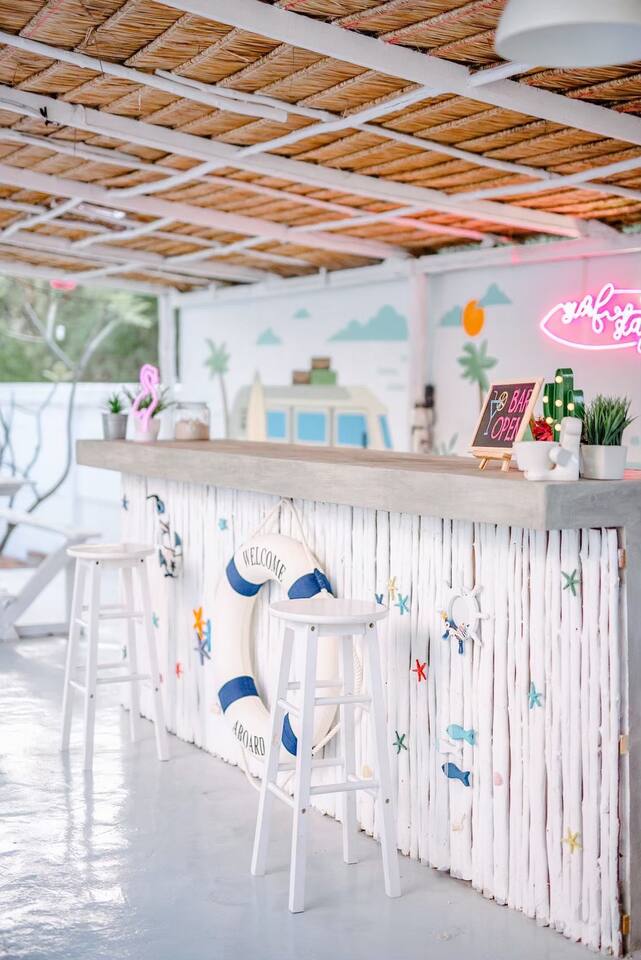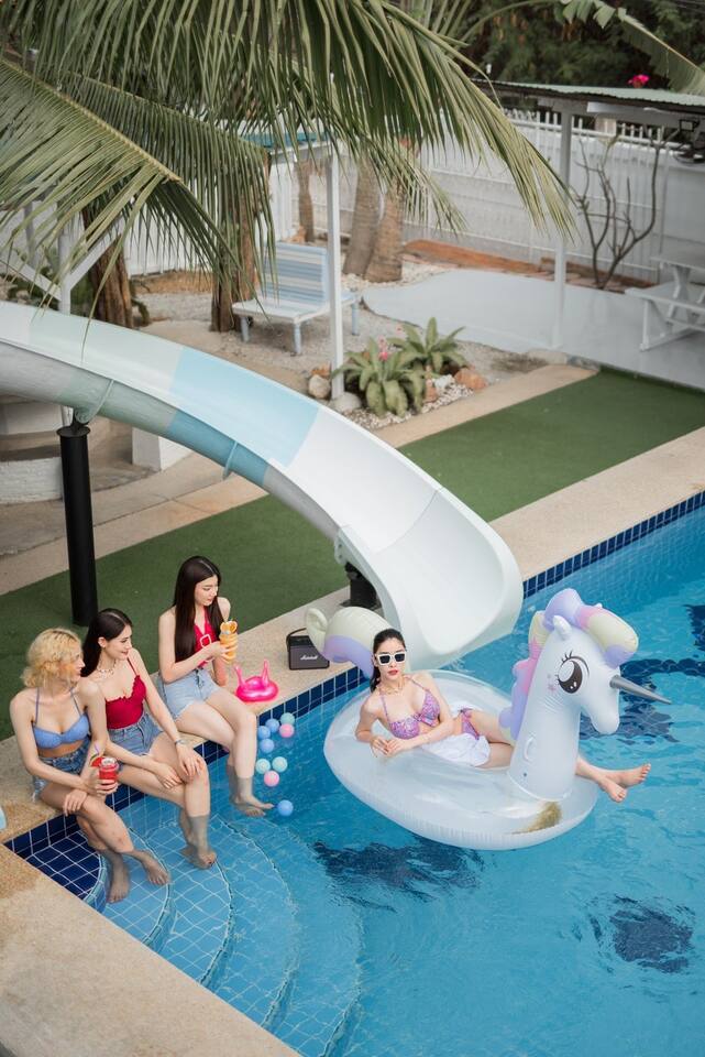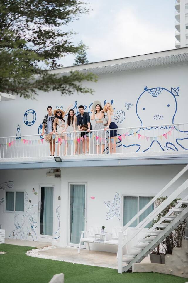 🔑 Guest Access When you book Surf Stay Pool Villa, you're not just renting a property – you're taking over an entire private beachfront estate. No shared spaces, no other guests, no restrictions. This is your private resort for the duration of your stay. All Indoor Spaces: ✨ 12 fully furnished bedrooms with high-quality bedding ✨ 13 bathrooms with hot water, towels, and toiletries ✨ Professional kitchen with full equipment for cooking ✨ All dining areas (indoor and outdoor) ✨ Air conditioning throughout ✨ High-speed WiFi in every room Outdoor Paradise: 🏊♀️ Private swimming pool 🍽️ Covered outdoor dining pavilion 🔥 BBQ grilling station 🌿 Tropical gardens and lawns with multiple seating areas 🚗 Parking: 5 cars on the property, 8 cars opposite the villa Optional Extra Services (additional charges apply): 💕 Villa staff for BBQ prep, cooking, and dishwashing (14:00–18:00) – 2,000 THB; overtime 300 THB/hour 💕 Traditional Thai massage 💕 Jet ski & banana boat activities 💕 Ice (10 kg): 60 THB 💕 Charcoal (per bag): 40 THB (Please order before 3:00 PM on check-in day)