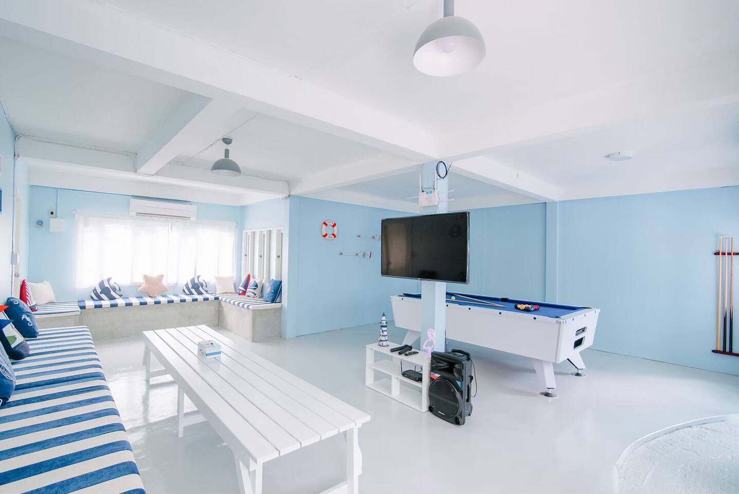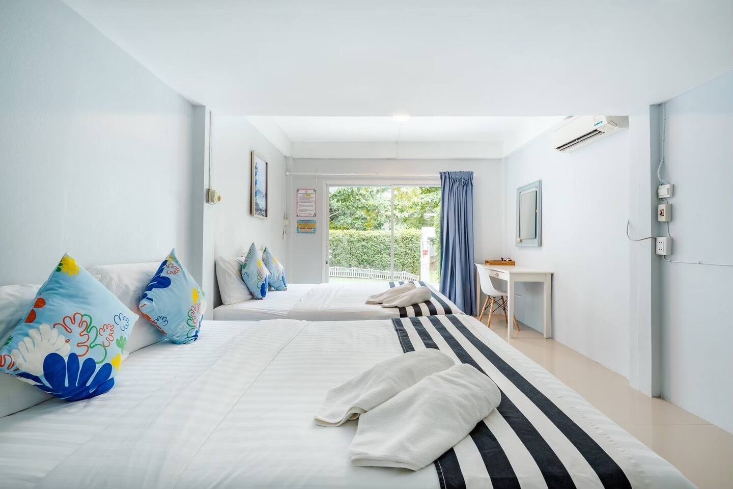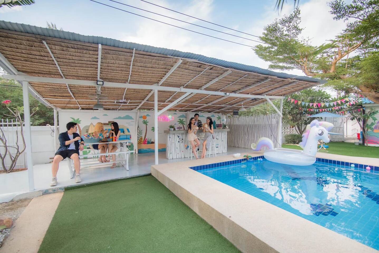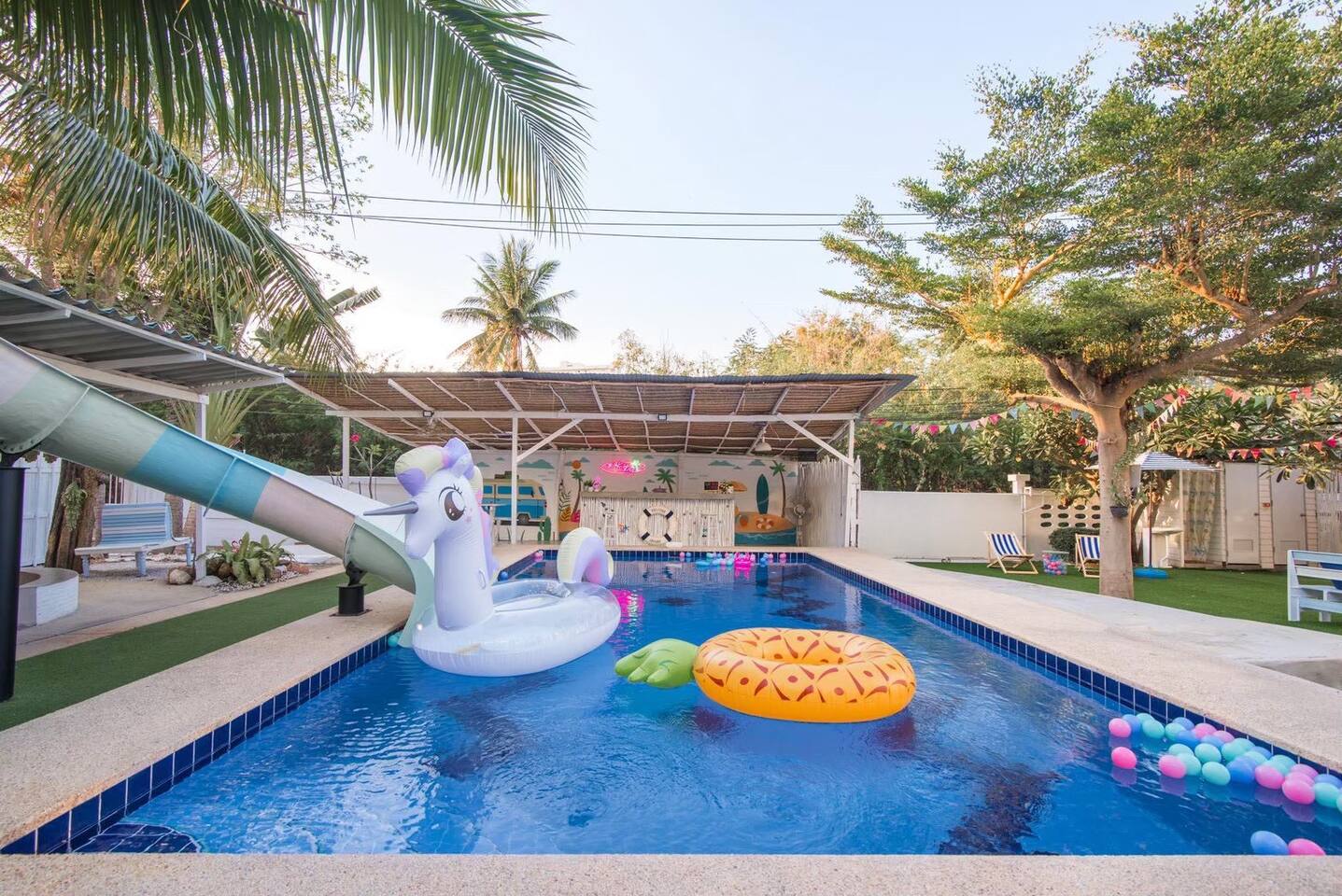 🔑 Guest Access When you book Surf Stay Pool Villa, you're not just renting a property – you're taking over an entire private beachfront estate. No shared spaces, no other guests, no restrictions. This is your private resort for the duration of your stay. All Indoor Spaces: ✨ 12 fully furnished bedrooms with high-quality bedding ✨ 13 bathrooms with hot water, towels, and toiletries ✨ Professional kitchen with full equipment for cooking ✨ All dining areas (indoor and outdoor) ✨ Air conditioning throughout ✨ High-speed WiFi in every room Outdoor Paradise: 🏊♀️ Private swimming pool 🍽️ Covered outdoor dining pavilion 🔥 BBQ grilling station 🌿 Tropical gardens and lawns with multiple seating areas 🚗 Parking: 5 cars on the property, 8 cars opposite the villa Optional Extra Services (additional charges apply): 💕 Villa staff for BBQ prep, cooking, and dishwashing (14:00–18:00) – 2,000 THB; overtime 300 THB/hour 💕 Traditional Thai massage 💕 Jet ski & banana boat activities 💕 Ice (10 kg): 60 THB 💕 Charcoal (per bag): 40 THB (Please order before 3:00 PM on check-in day)