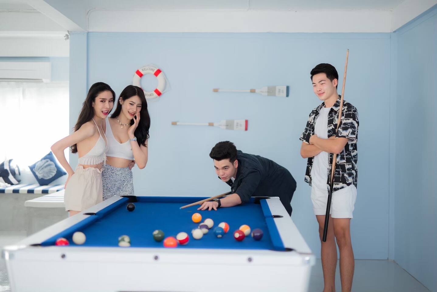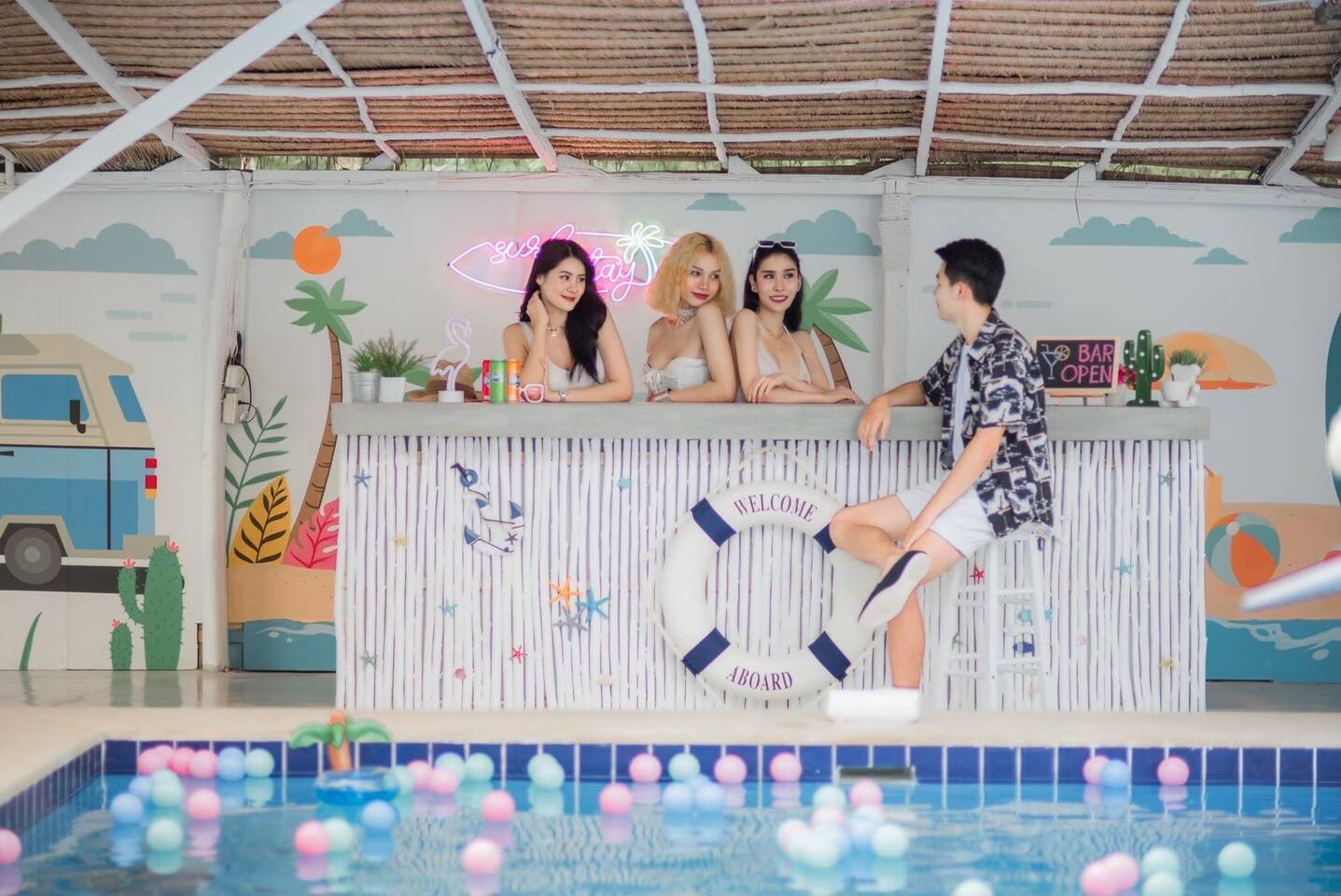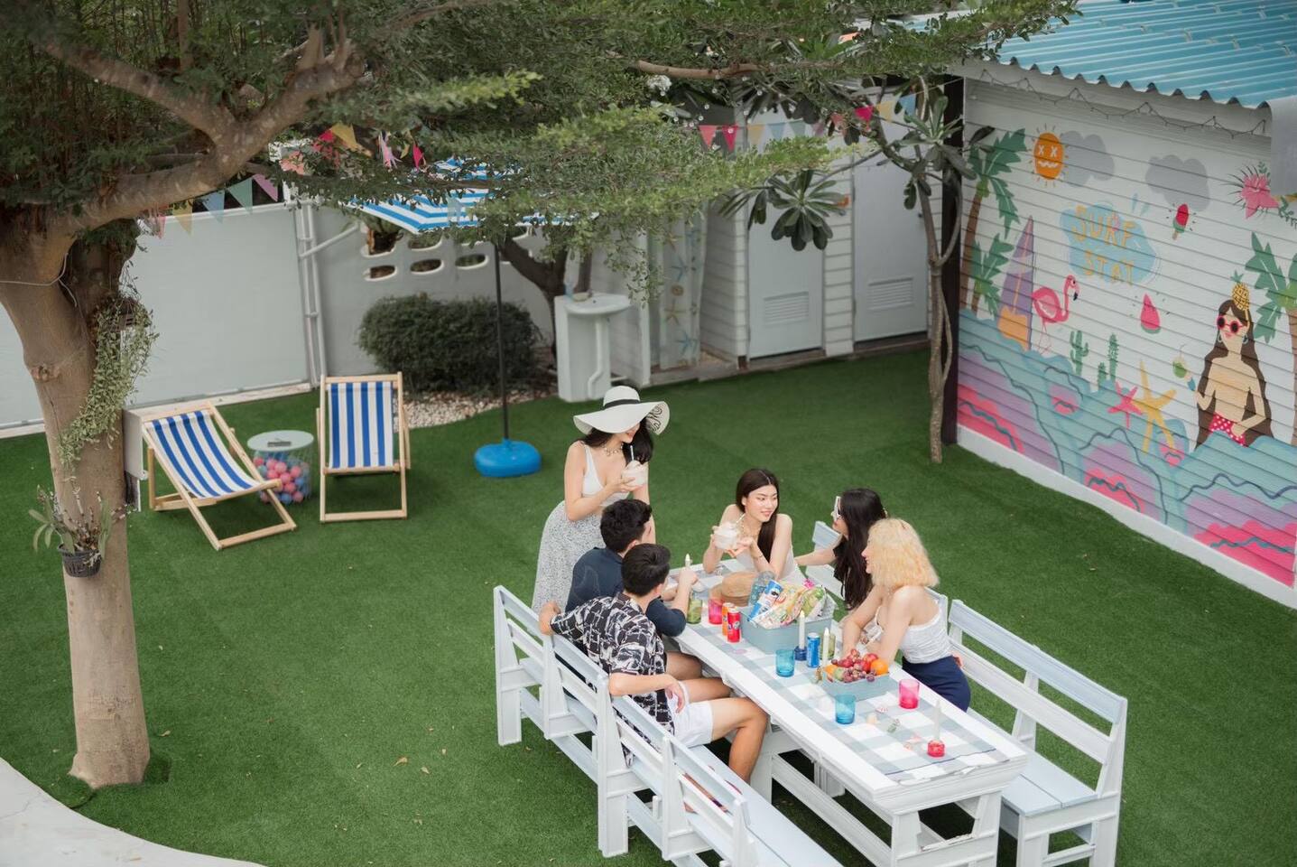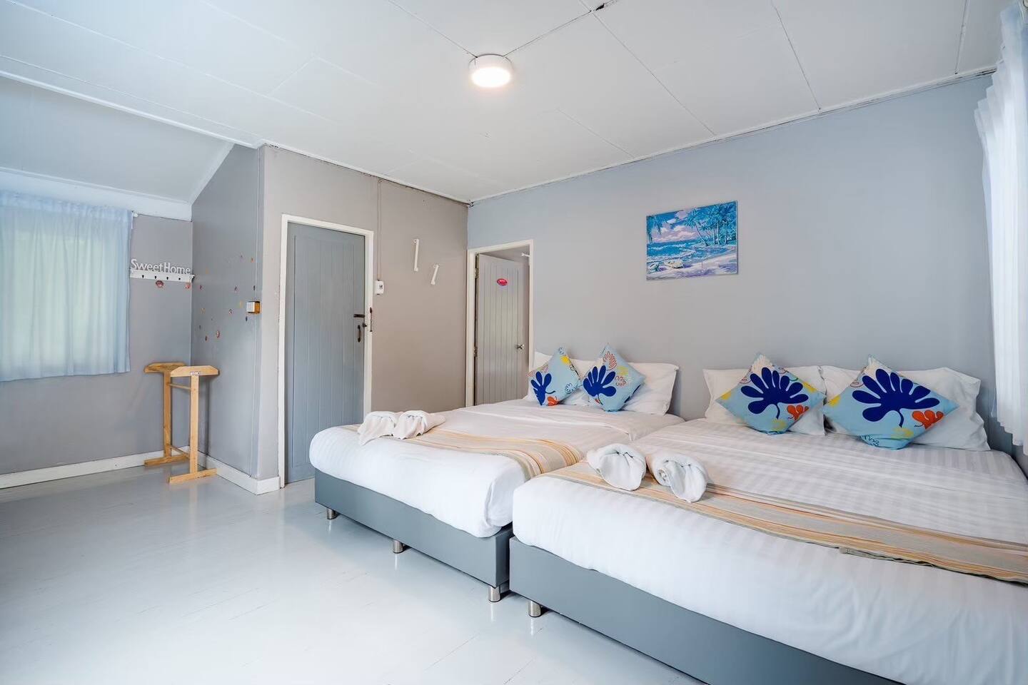 🔑 Guest Access When you book Surf Stay Pool Villa, you're not just renting a property – you're taking over an entire private beachfront estate. No shared spaces, no other guests, no restrictions. This is your private resort for the duration of your stay. All Indoor Spaces: ✨ 12 fully furnished bedrooms with high-quality bedding ✨ 13 bathrooms with hot water, towels, and toiletries ✨ Professional kitchen with full equipment for cooking ✨ All dining areas (indoor and outdoor) ✨ Air conditioning throughout ✨ High-speed WiFi in every room Outdoor Paradise: 🏊♀️ Private swimming pool 🍽️ Covered outdoor dining pavilion 🔥 BBQ grilling station 🌿 Tropical gardens and lawns with multiple seating areas 🚗 Parking: 5 cars on the property, 8 cars opposite the villa Optional Extra Services (additional charges apply): 💕 Villa staff for BBQ prep, cooking, and dishwashing (14:00–18:00) – 2,000 THB; overtime 300 THB/hour 💕 Traditional Thai massage 💕 Jet ski & banana boat activities 💕 Ice (10 kg): 60 THB 💕 Charcoal (per bag): 40 THB (Please order before 3:00 PM on check-in day)